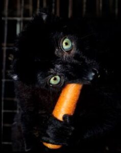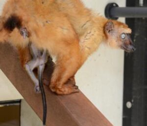 Second, the most common cause of loose stools in Eulemurs at the DLC are 1) stress, and 2) captive diets which don’t contain the high levels and variety of fiber found in wild diets but contain more simple sugars and easily digestible carbohydrates.