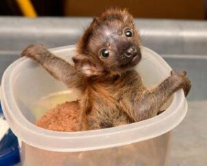 Infants are carried transversely on their mothers’ lower abdomen. Twins typically orient in different directions, so their heads are opposite each other. Newborns must cling to and locate the female’s nipples on their own since mothers can only minimally support or guide them. Females spend most of the first days postpartum huddled over their infant in a manner that places the infant in a position that facilitates nursing. If an infant falls off its mother, it will likely not be retrieved. Maternal care consists mainly of staying still so teh infant can nurse, huddling over the baby to keep it warm, and grooming.
