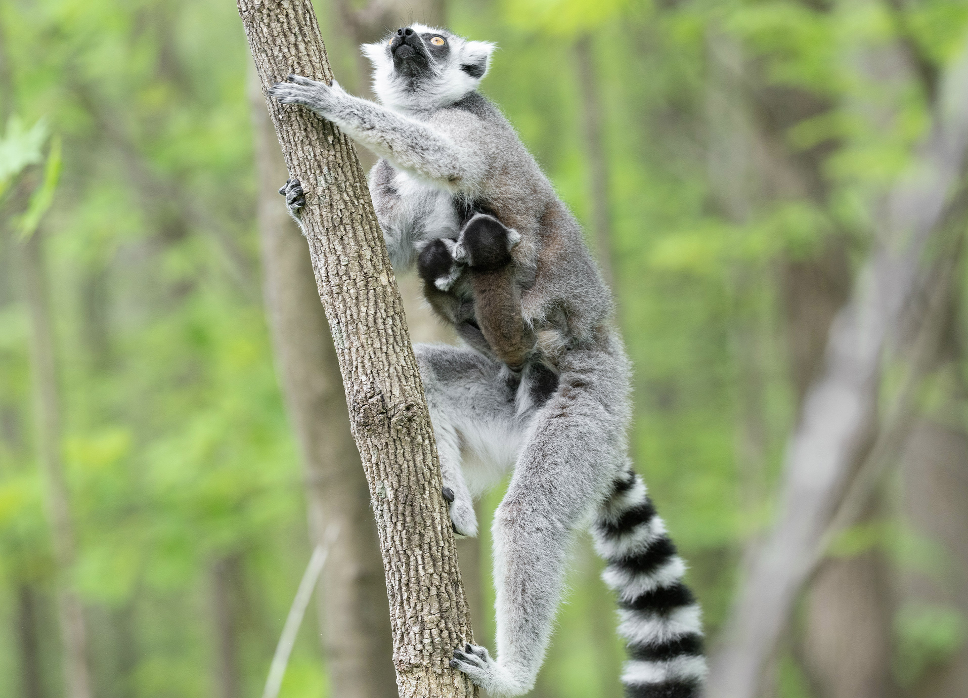 At the DLC, ring-tailed lemurs are generally given literary names, and recent births have included Atticus and Scout (To Kill a Mockingbird), Merry and Eowyn (The Lord of the Rings), Mr. Popper (Mr. Popper’s Penguins), and Gatsby (The Great Gatsby). This family, however, is from a special line of ring-tailed lemurs that has Greek-themed names.