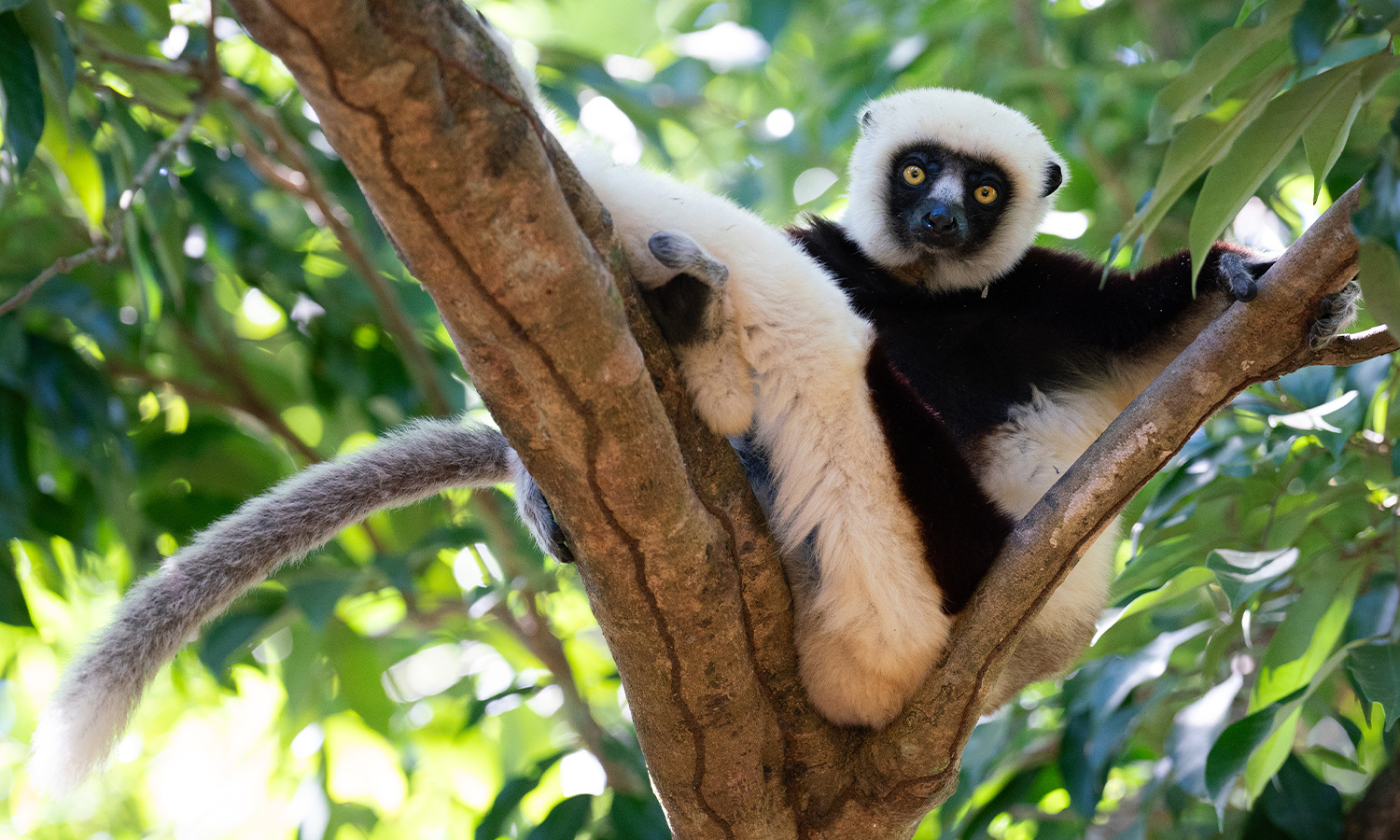 A free-ranging Coquerel’s sifaka at Lemuria Land (Nosy Be, Madagascar) during a site visit in 2024.