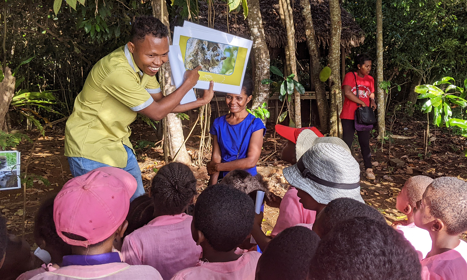 DLC-SAVA educator Candidier Dimbiarijaonina. Last year, Candidier and other members of the DLC-SAVA team visited more than 100 schools, reaching over 10,000 children, to teach about lemurs and the environment