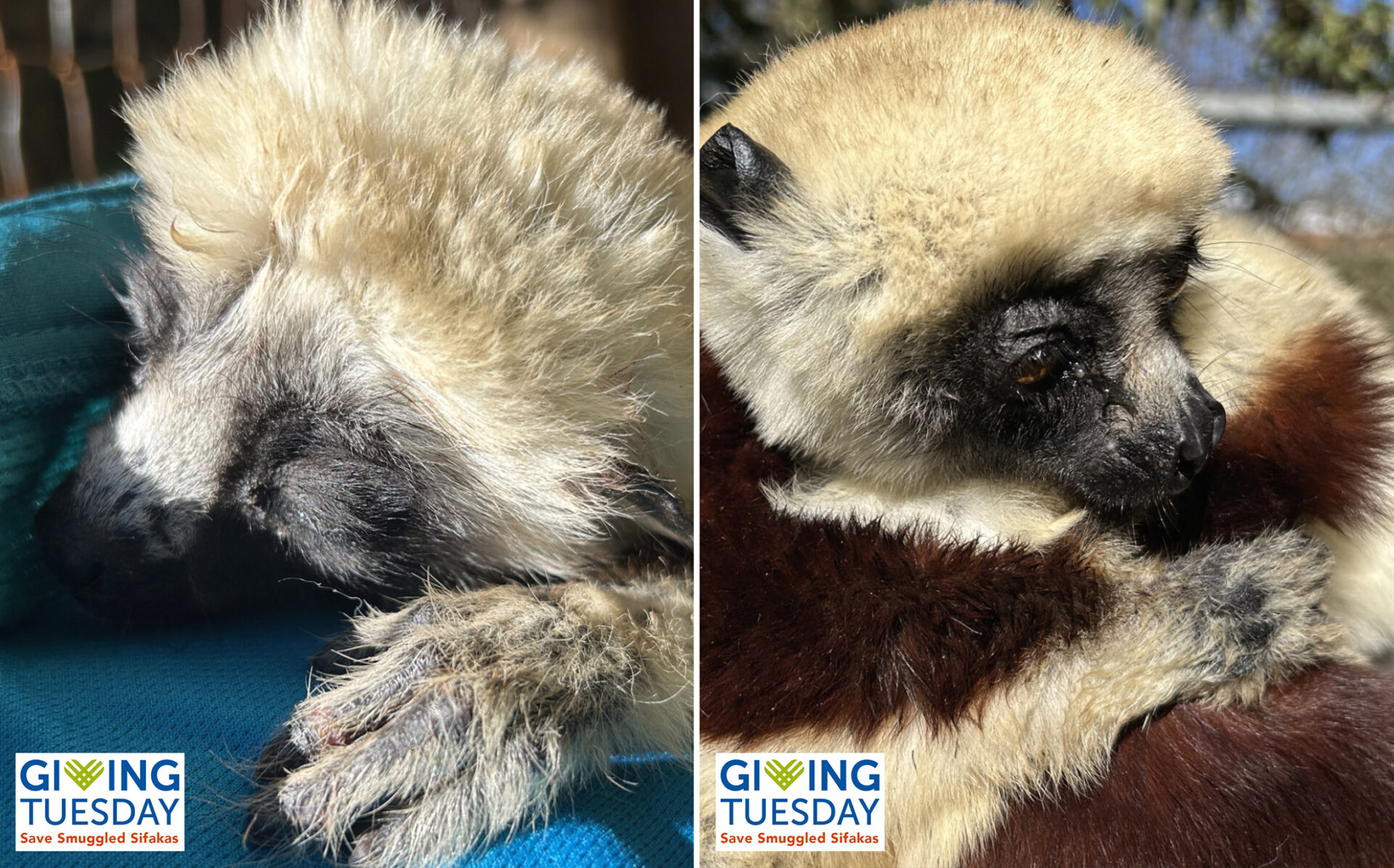 This #GivingTuesday, we’re raising funds to support a critical but heartbreaking aspect of the DLC’s partnership with Madagascar’s Ministry of Environment and Sustainable Development (MEDD): emergency care for Coquerel’s sifakas rescued from illegal wildlife trafficking.