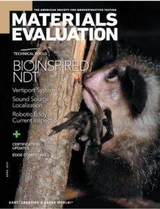 Elphaba, an aye-aye born at the Duke Lemur Center, graces the cover of the journal Materials Evaluation in April 2025. Ehsan sees the aye-aye as an ambassador for both technological innovation and nature’s genius. Photo by David Haring.